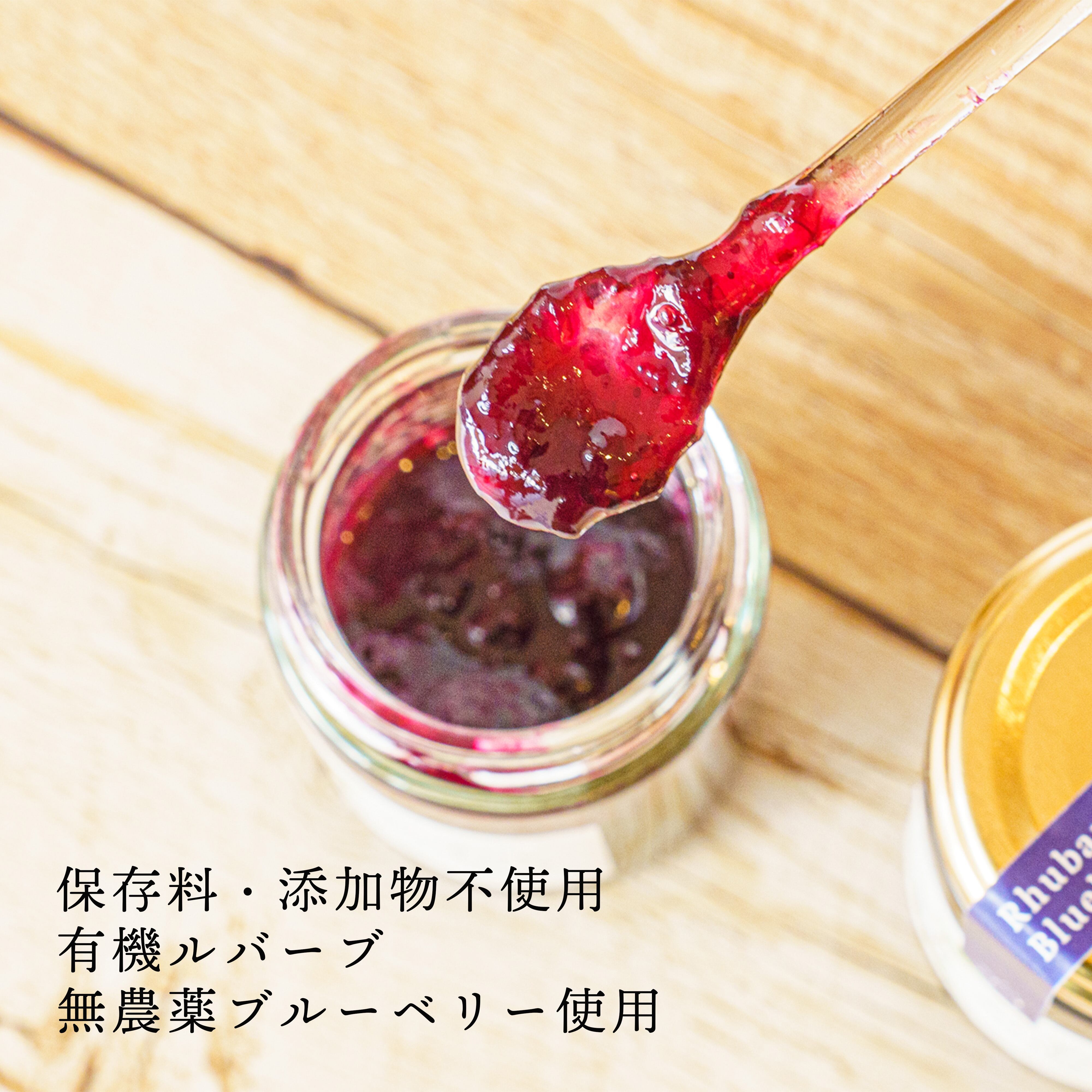 原材料名:有機ルバーブ(北海道産)、ブルーベリー、有機きび糖